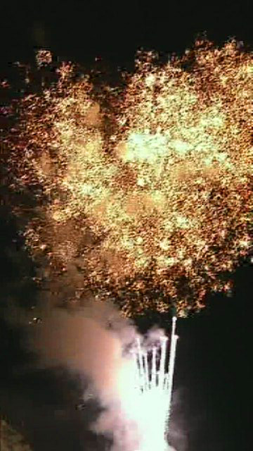 この祭りのテーマは、過去の噴火の再現と言うだけあり、連発の演出、山頂からの擬似噴火と、とてもきれいな花火でした。