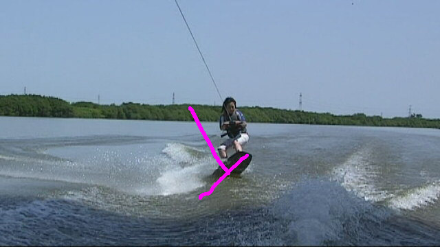 板はウェイキを登る角度になっているのに、体は逆らってますね。